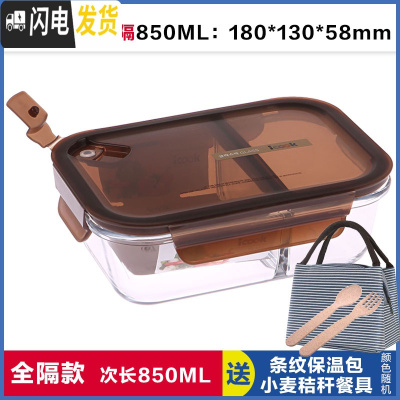 三维工匠全隔断带分隔玻璃饭盒双层保鲜盒学生分格便当盒密封碗 全隔离棕850,赠保温包+餐具
