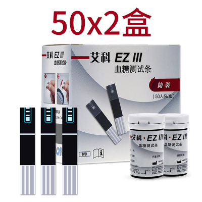 艾科EZIII血糖仪试纸 试纸(单片包装带针)50片 两盒装 不含血糖仪