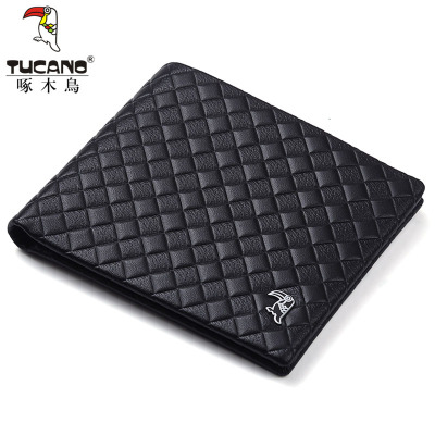 啄木鸟钱包男短款休闲个性新款潮流头层牛皮横版钱夹菱格折叠皮夹