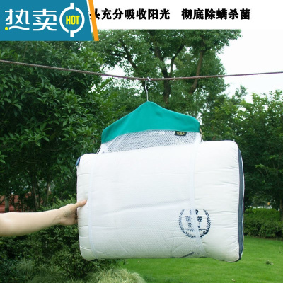 敬平晒枕头器宿舍家用阳台多功能防风晾晒抱枕玩偶网兜网袋枕芯衣架 晒枕头网蓝绿色白网 单层[不带 衣架]晒衣篮