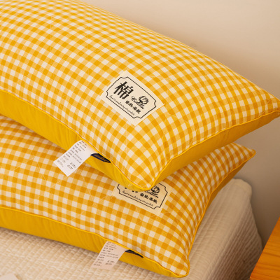 a类色织全棉枕头家用单人夹棉枕芯水洗棉酒店枕头芯成人低枕