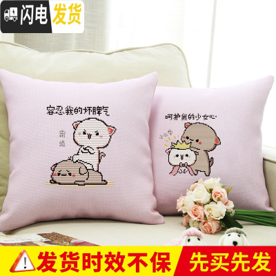 三维工匠十字绣抱枕2019新款车里放的枕头刺绣可爱情侣一对简单自己绣手工 [不含枕芯]粉色一对[45X45CM]棉线
