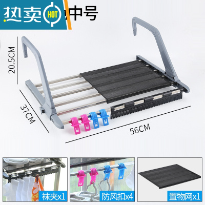 敬平阳台晾衣服器晒鞋架窗台晾衣架窗户晾晒杆防盗网晒枕头窗架 塑钢厚不锈钢方管灰色中号带网 带网带夹晒衣篮