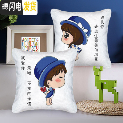 三维工匠十字绣抱枕可爱情侣一对客厅枕头套学生自己绣2019 [埃及长绒棉4股线绣][抱枕一对][尺寸40*40cm]无枕