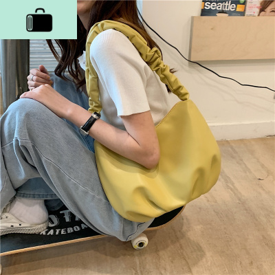 包包女2020春夏新款褶皱单肩包云朵包托特包百搭软皮纯色大容量包NEW LAKE女士单肩包