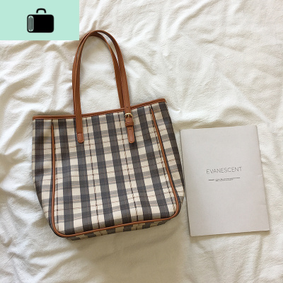 程牙伢 2020韩版春夏新款简约托特大包 休闲百搭单肩手提格子包女NEW LAKE 图片色·女士单肩包