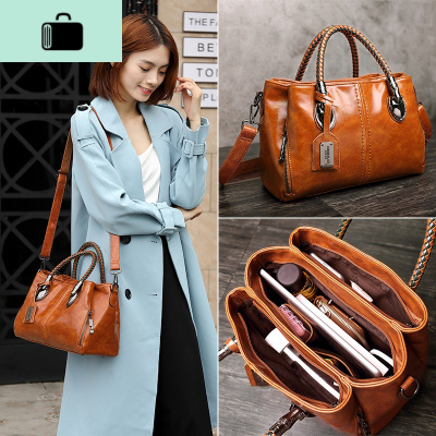 手提包女2020新款气质大牛皮复古包袋单肩斜挎包时尚大容量NEW LAKE女斜挎包