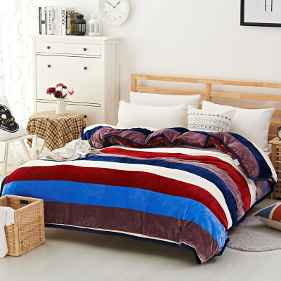 慵懒格调!加厚亲肤柔软毯子牛奶绒羊羔绒条纹毛毯盖毯午睡毯子