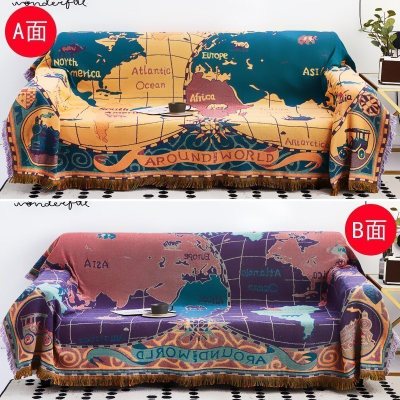 家柏饰(CORATED)北欧双面全盖沙发布沙发巾沙发毯布单沙发套罩沙发垫盖布 地图[双面] 230*250cm