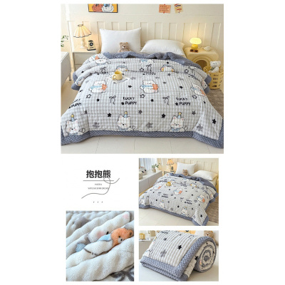 秋冬季加绒兔毛豆豆牛奶绒毛毯被子单人学生珊瑚绒加厚盖毯冬被芯
