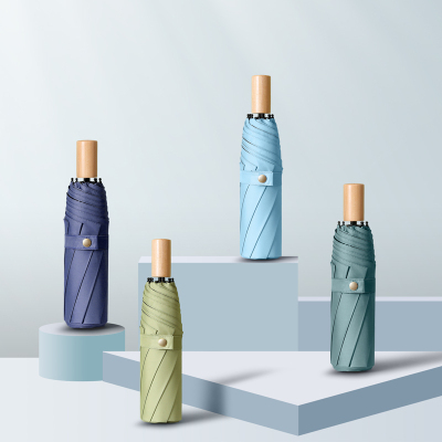 旭晴三折手开黑胶防晒清新小木柄晴雨伞