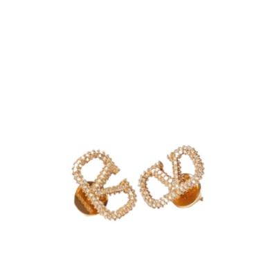 华伦天奴(Valentino)金属耳饰女穿孔徽标字母珠饰吊坠蝴蝶扣时尚