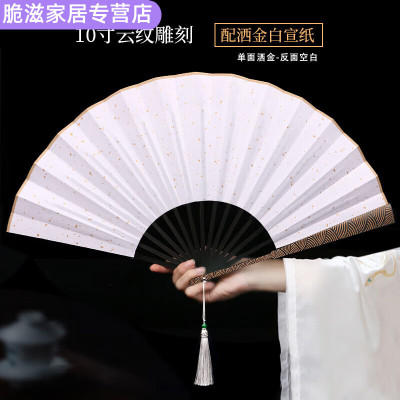 翊橙扇子折扇送人高端定制云纹精雕刻宣纸黑洒金绢布古风海浪纹国潮男