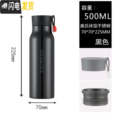 三维工匠保温杯男女学生不锈钢便携水杯创意水壶情侣水杯礼品水杯 [亮面]黑色500(杯刷+杯套)