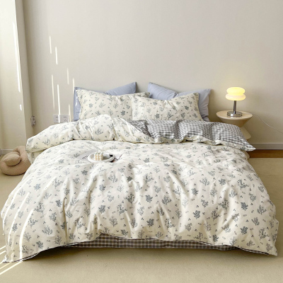 全棉纯棉床单被套田园小清新印花系列四套件婚庆节庆礼品(适用于1.5米床)