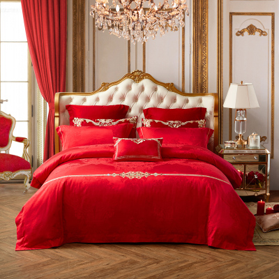LOVO 乐蜗家纺床品六件套 精美提花绣花 婚庆套件大红 床上用品床单被套枕套其它 1.5/1.8米床 私语爱恋