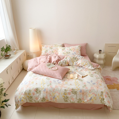 全棉纯棉床单被套田园小清新印花系列四套件婚庆节庆礼品(适用于1.5米床和1.8米床)