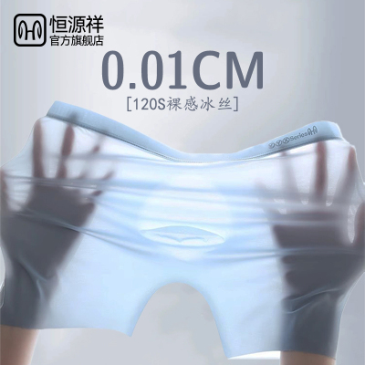 恒源祥男士冰丝内裤超薄无痕男生透气夏季平角男式透明四角薄短裤