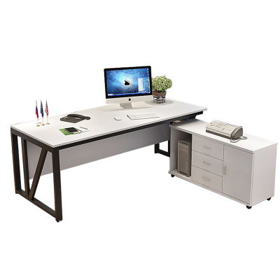 永格办公家具办公桌组合职员工电脑桌屏风工位现代简约单人办公室老板桌椅黑架+白色总长1.6米[含侧柜]