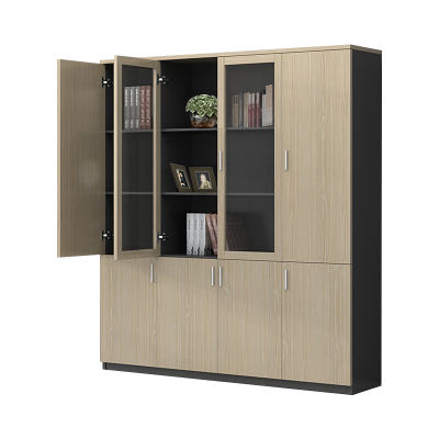 永格书柜木质文件柜档案柜板式玻璃书柜储物柜三门资料柜