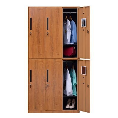 永格办公室钢制彩色六门员工更衣柜存衣储物柜 仿木纹转印铁皮柜