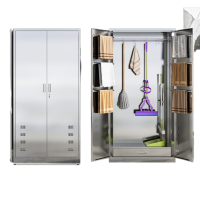 锦北清洁柜拖把扫帚吸尘器保洁杂物收纳柜90*40*180cm201不锈钢拖把柜