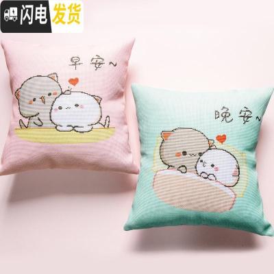 三维工匠十字绣抱枕2019新款线绣抱枕套自己绣小件车上情侣一对手工 [早安+晚安]一对[带枕芯]品质棉线-送全套小工具