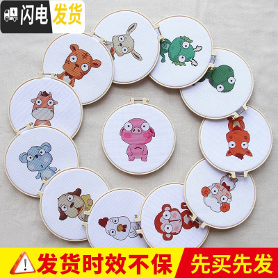 三维工匠十二生肖十字绣2019新款绣小件可爱自己绣简单儿童初学者学生手工 [一套12幅][棉线-29CM]送绣绷+丝带