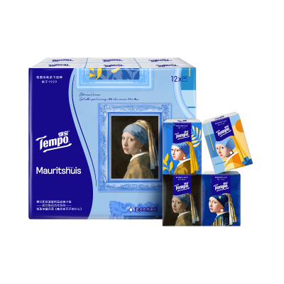 Tempo得宝戴珍珠耳环的少女联名无香手帕纸7片12包纸巾 4层加厚外出迷你便携小包装卫生纸餐巾纸-新旧随机发