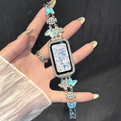 适用于华为手环11表带11pro新款10/9金属8蝴蝶皇冠镶钻链式band7智能NFC荣耀手环10/9春夏季女款高级轻奢