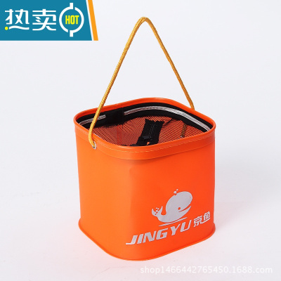 敬平儿童户外小桶 可折叠小水桶 户外玩具捉鱼捉蝌蚪玩沙戏水加厚耐摔 橙色带网方桶