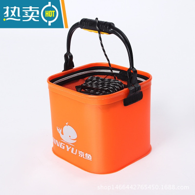 敬平儿童户外小桶 可折叠小水桶 户外玩具捉鱼捉蝌蚪玩沙戏水加厚耐摔 橙色带网有提手方桶