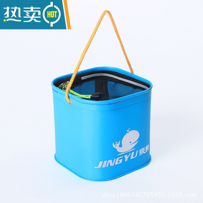 敬平儿童户外小桶 可折叠小水桶 户外玩具捉鱼捉蝌蚪玩沙戏水加厚耐摔 浅蓝色带网方桶