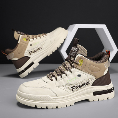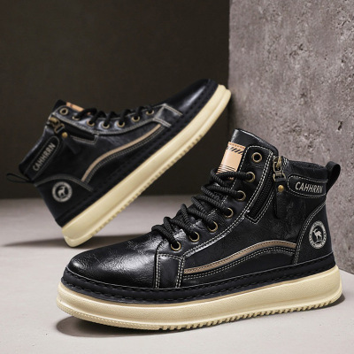 马丁靴秋季上新皮革拼接厚底增高青年运动鞋高帮系带潮搭马丁男靴