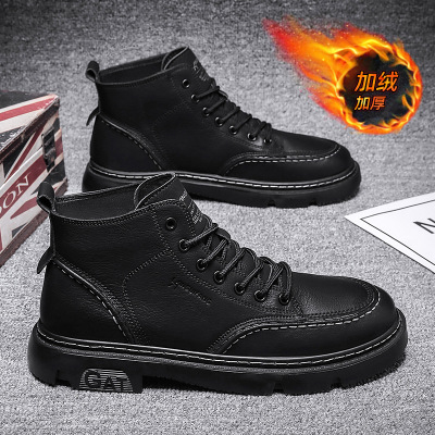 英伦风冬季马丁靴秋冬新款加绒高帮户外运动工装靴黑色潮男靴