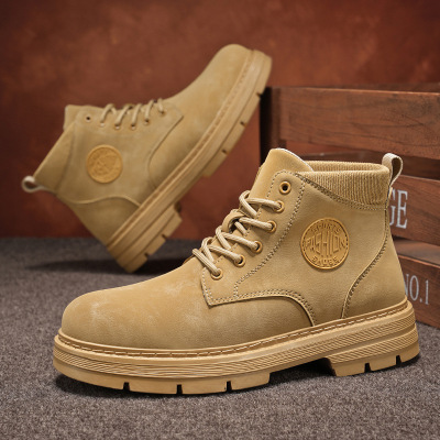 秋冬季新款超纤皮面纯色百搭高帮马丁靴高品质工装休闲运动潮男靴