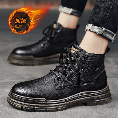 冬季户外运动保暖马丁靴时尚百搭主帮加绒加厚暖和舒适休闲潮男靴