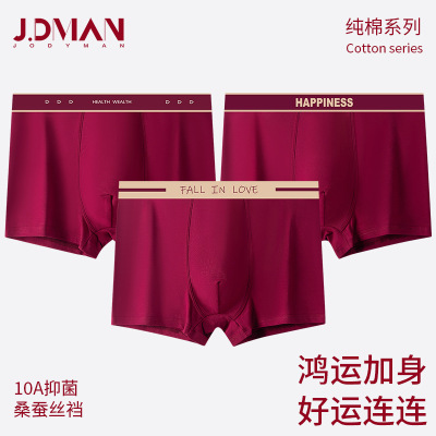 10A红色男士内裤 男士安可拉红纯棉四角裤 本命年男红内裤