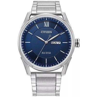 西铁城(CITIZEN)光动能男士经典不锈钢腕表42mm蓝盘防水100米男士石英手表