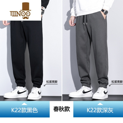 恒源祥纯棉休闲裤男春秋款运动裤男士宽松直筒灰色卫裤束脚长裤子