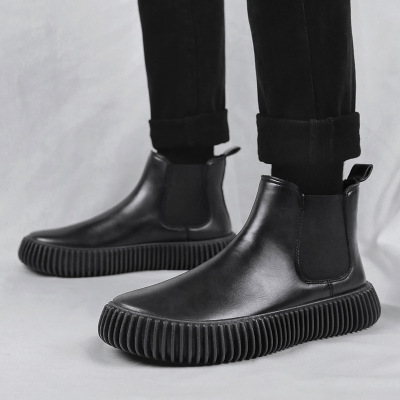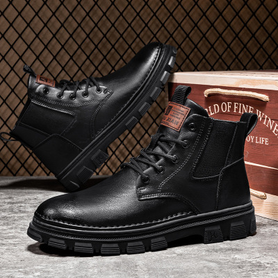 秋冬上新复古百搭皮面工装靴时尚切尔西男士休闲短靴厚底增高男靴