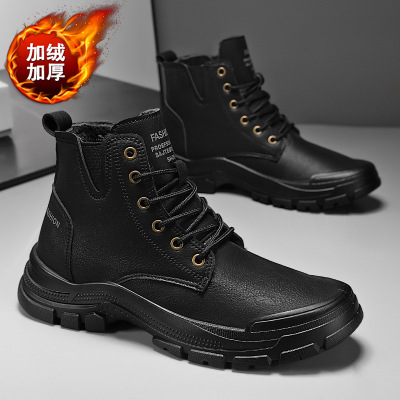 秋冬加绒马丁靴新款高帮加绒加厚保暖户外雪地工装靴时尚男靴