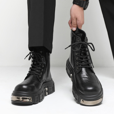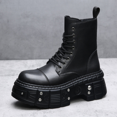 厚底马丁靴男士拉链高帮机车男靴英伦增高短靴新款朋克中筒靴