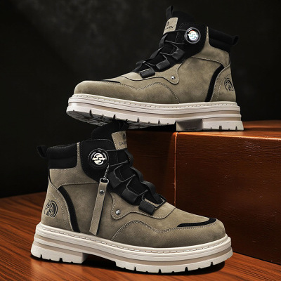大码马丁靴冬季英伦工装鞋高帮休闲潮流男靴旋转扣舒适男鞋子