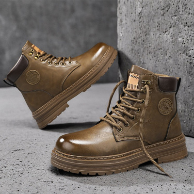 马丁靴男士高帮英伦复古工装皮靴日常休闲百搭秋冬季厚底增高男鞋