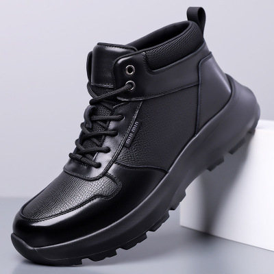 2023冬季新款男士黑色休闲皮靴板鞋男款潮鞋马丁靴男加绒保暖棉鞋