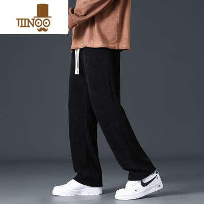 YANXU灯芯绒卫裤男春宽松直筒阔腿裤潮牌厚款垂感休闲长裤子男生