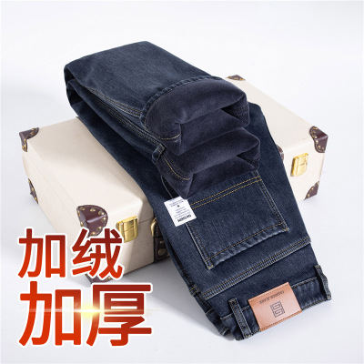 冬季牛仔裤男秋冬款宽松直筒男士高腰深裆男裤加绒加厚休闲长裤子