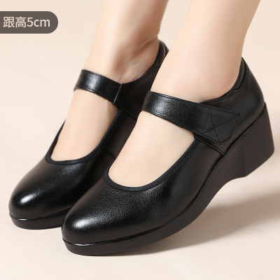热卖中老年妈妈鞋牛皮女式单鞋休闲舒适四季单鞋