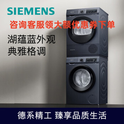 西门子(SIEMENS)WG52A1X14W+WQ45A2D10W 湖蕴蓝洗烘套装 10kg滚筒洗衣机+9kg热泵烘干机